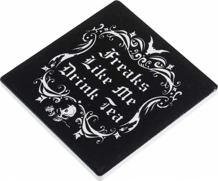 This ‘Freaks like me drink tea’ coaster is perfect for that tea loving friend. Why not team it up with the matching giant teapot coaster baring the same slogan! There are 10, unique Alchemy designed coasters why not collect them all!