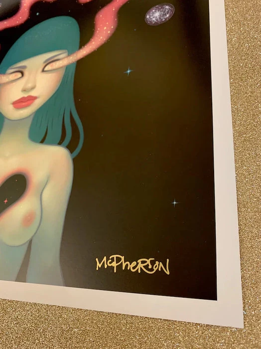 Tara McPherson is an artist based out of New York City. Creating art about people and their odd ways, her characters seem to exude an idealized innocence with a glimpse of hard earned wisdom in their eyes. She explores myths and legends, astronomy, nature, love, childhood and good old life experience. People and their relationships are a central theme throughout her work.