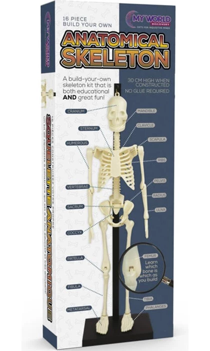 A fantastic teaching aid to learn all about human anatomy with this skeleton. Comes with labelled box to help you match up the bones with their name.
