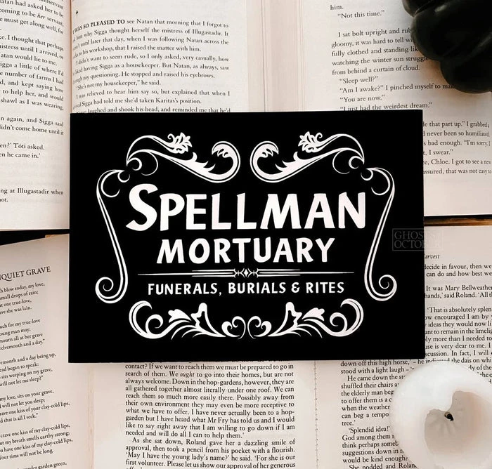 Ghosts of Octobers take on the Spellman Mortuary sign with a gothic twist! Perfect for your gallery wall!