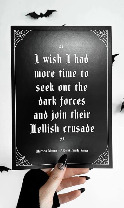 The Addams Family ‘Hellish Crusade’ Quote Gothic Print.