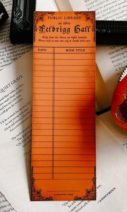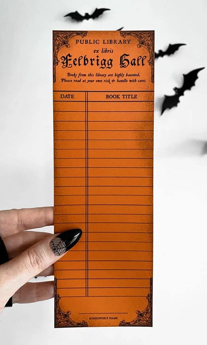 Vintage Haunted Library Card Bookmark inspired by vintage library cards and the real haunted library at Felbrigg Hall, England. Featuring writable material so you can keep track of all of your books as you read them! We recommend using a fine point sharpie or ballpoint pen for the Vintage Library Card Bookmark, or any pen you love that you know won’t smudge!