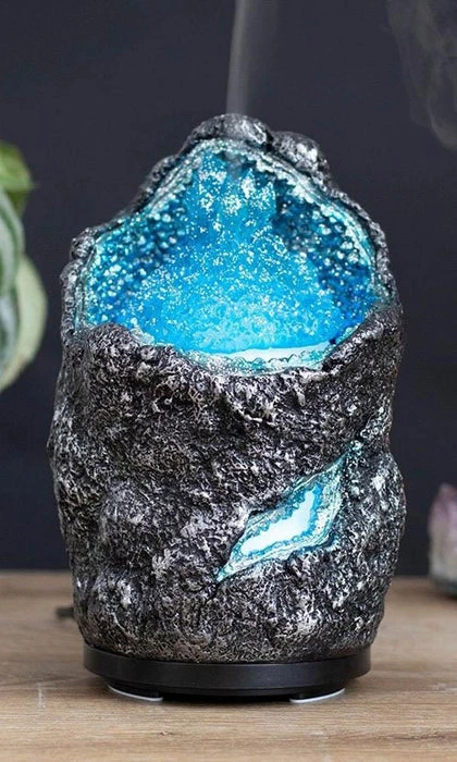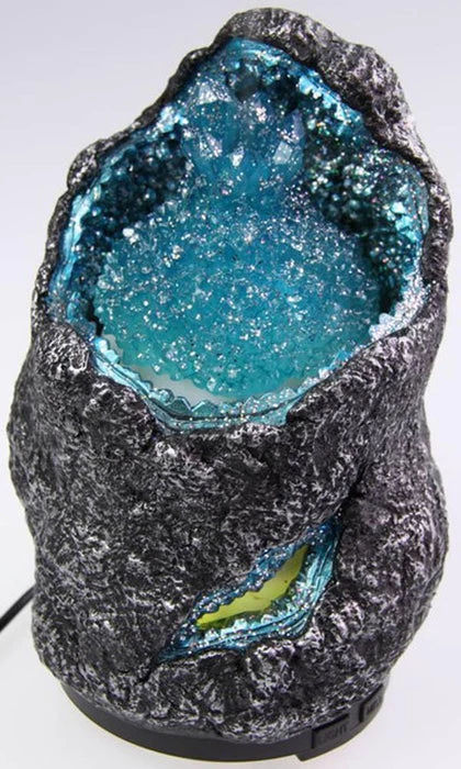 Create an instant magical ambiance with this blue faux geode diffuser! Use it as a lamp to add soft lighting or sleep soundly with the added benefit of the humidifier restoring moisture to the air, perfect in the colder months!