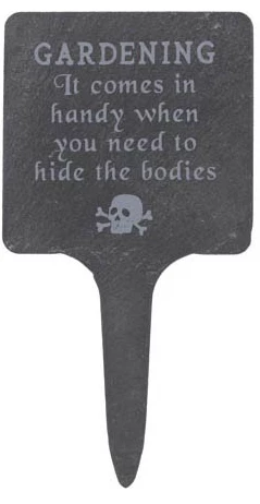 These slate garden signs feature 4 humorous phrases perfect for the cynical gardener.