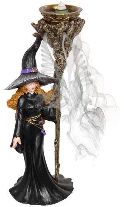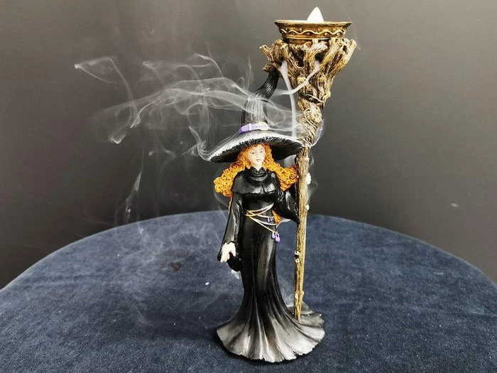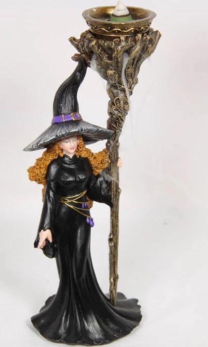 ThisΒ beautiful witch would look perfect standing tall and powerful on your altar. The space on top of her staff allows you to fit incense cones and when lit, creates a backflow burner, giving her a mysteriousΒ and magical vibe.Β
