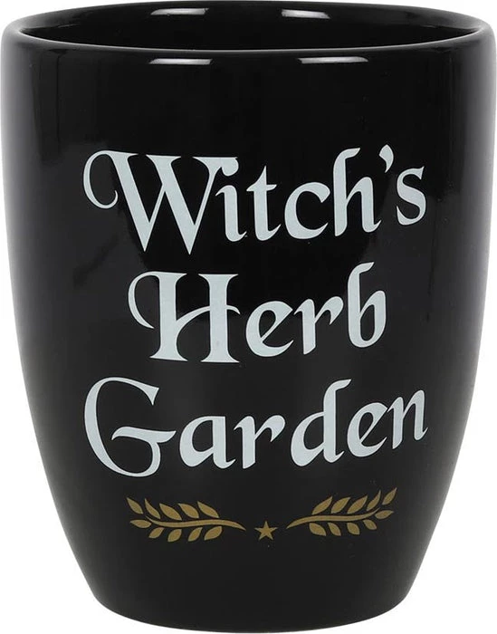 Whether grown from seed or storebought, magical herbs of all varieties will feel right at home with this witchy design. This ceramic plant pot features ‘Witch’s Herb Garden’ text accented by a simple leaf design. Perfect for green witches and spellwork.