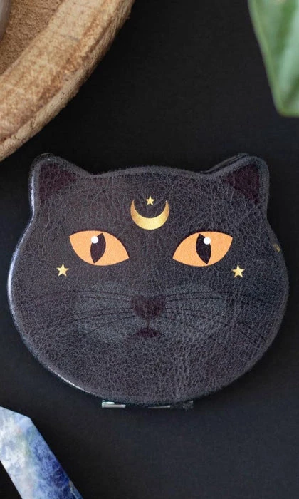 This gothic cat compact features a black cat with a half moon design on the front. This item would make for a great addition to any store as a countertop display item.ย