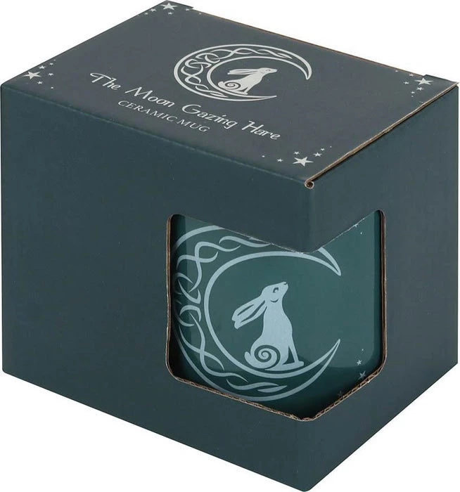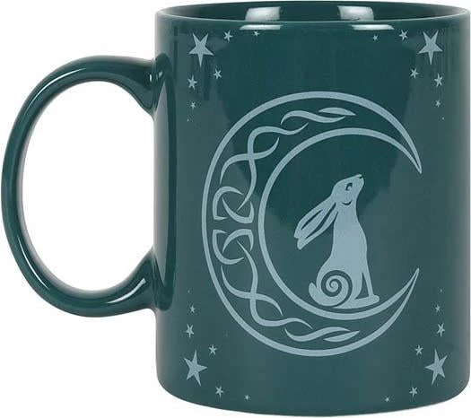 This green bone china mug features a moon gazing hare surrounded by stars, representing growth and good fortune. Comes in a matching display box and makes a thoughtful gift for the spiritual. Designed by Something Different Wholesale. Microwave and dishwasher safe.
