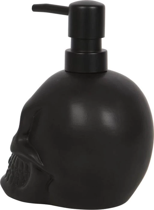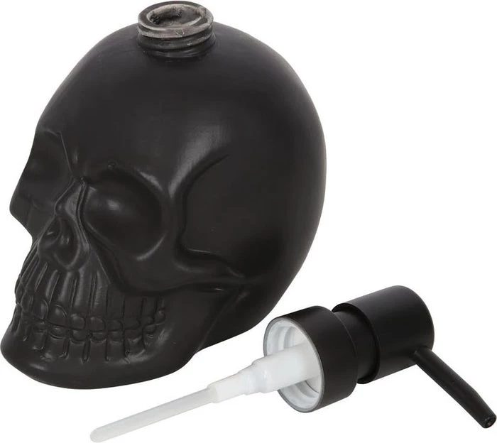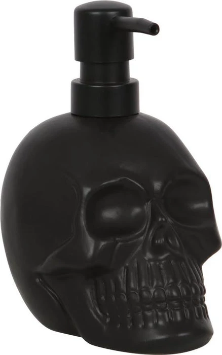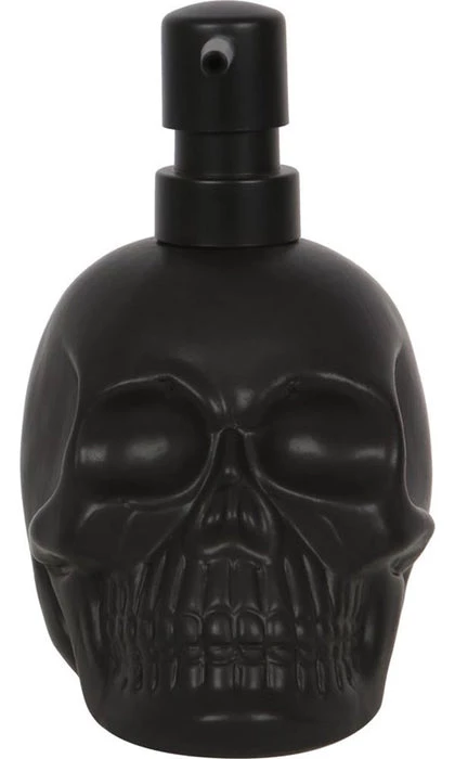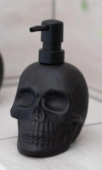 This black skull soap dispenser is a unique piece to finish off a gothic sink space.