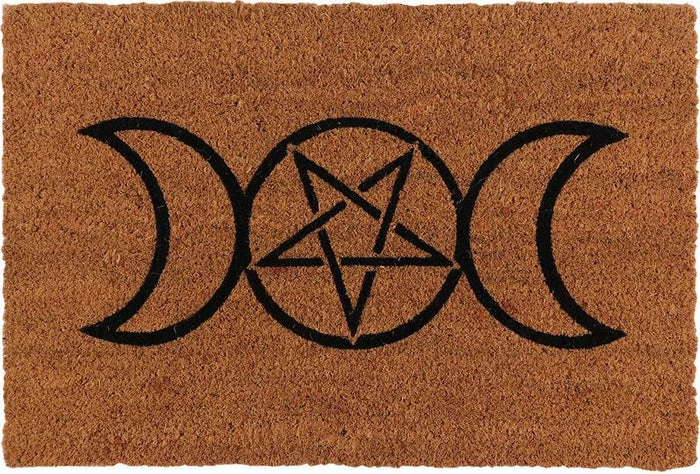 A natural coir doormat with printed Triple Moon design. The Triple Moon is a popular symbol representing the Triple Goddess and is characterised by a waxing, full and waning moon.