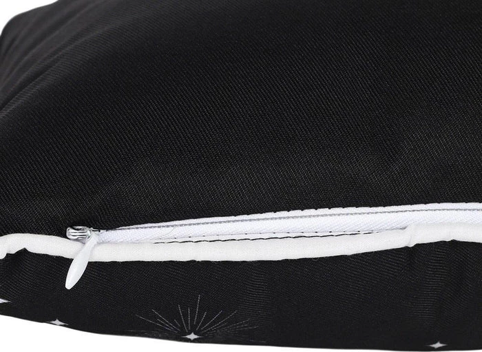 Get Gothic with your home wares. This gorgeous rectangular cushion features a grey triple moon design and white tassel accessory on each corner. Zip closure so inner can be removed.
