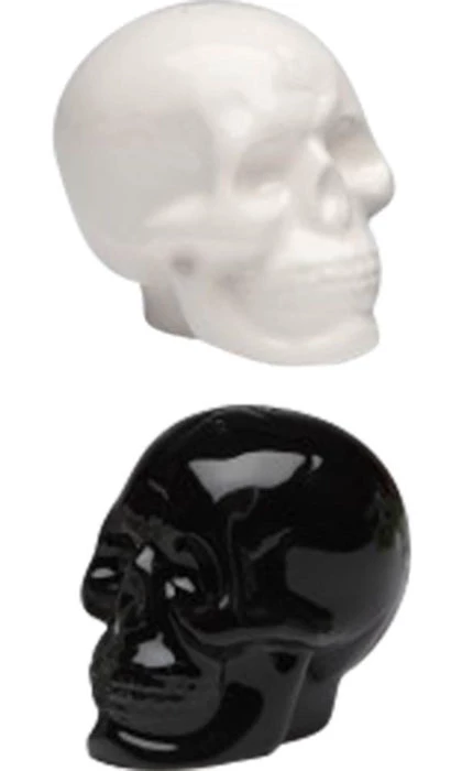 Spook up your next meal with these Black and White Skull Salt and Pepper Shakers!