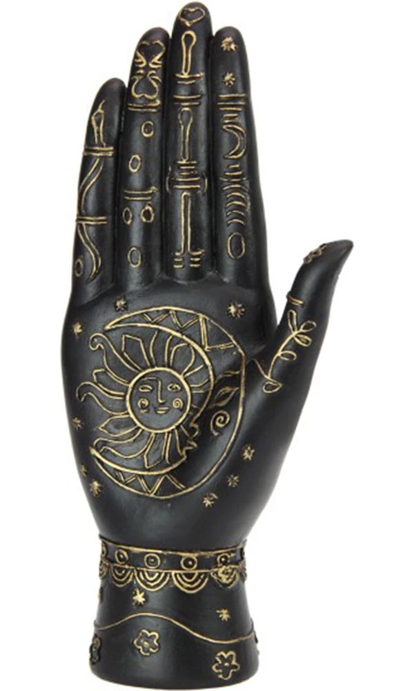 This black hand with gold carved palmistry details is the perfect addition to any Gothic home!