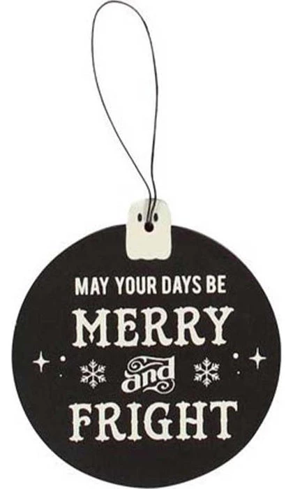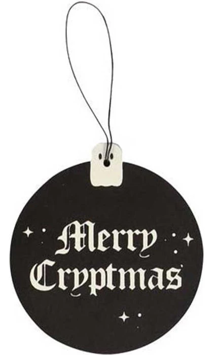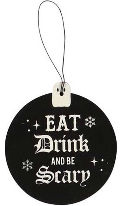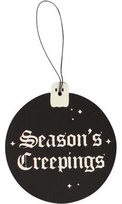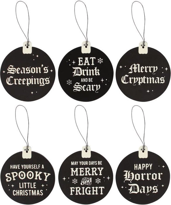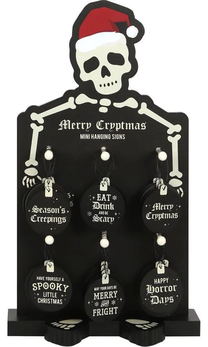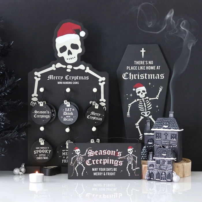 Phrases include; ‘Season’s Creepings’, ‘Eat, Drink and Be Scary’, ‘Merry Cryptmas’, ‘Have Yourself a Spooky Little Christmas’, ‘May Your Days Be Merry and Fright’ and ‘Happy Horrordays’.