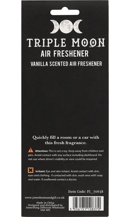 This sweet vanilla air freshener features triple moon design and is perfect for hanging in the car or in a room to create a fresher atmosphere.
