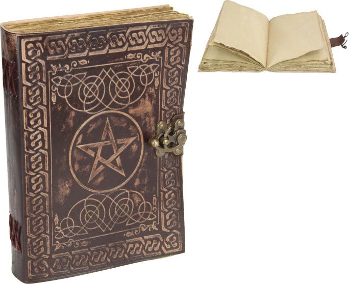 This bewitchingΒ journalΒ comes with an antique Celtic design, a pentacle in the center and a latch to keep it closed. This stunning notebook makes a beautiful journal and spell book you will want to keep forever.Β