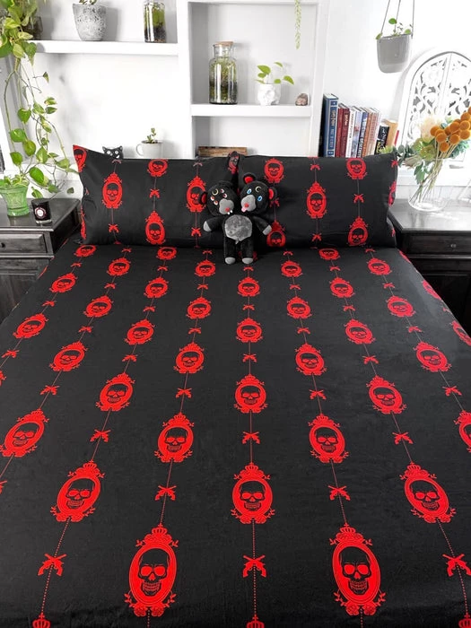 The Horror Nightmare King Quilt Set brings creepy and macabre vibes to the bedroom. Featuring skulls print design – perfect for anybody who likes to doze on the deadly side!
