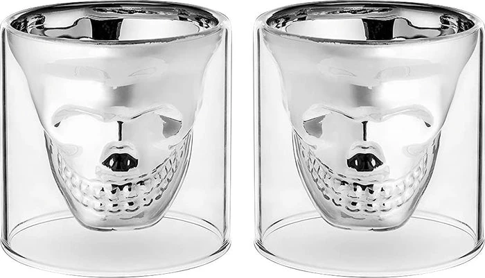 - Made of glass with food safe electroplated skull