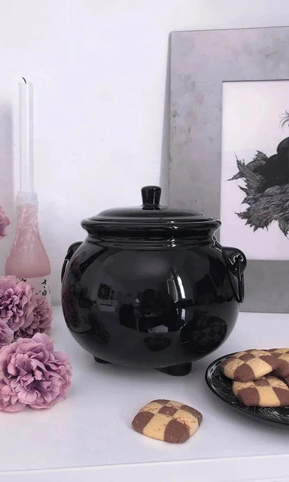 Which treat will you conjure up today? Regardless of if it is choc-chip, snickerdoodles, gingersnaps, shortbread or any other sweet treat there’s only one place to store them – the must-have ‘Cauldron’ cookie jar. Featuring a ceramic body, magickal black glaze, handle detail and detachable lid – perfect for any spooky kitchen.