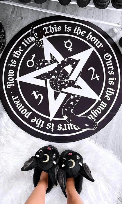 Complete your decor with this round rug with a statement print. Perfect for any areas in your crypt or home.