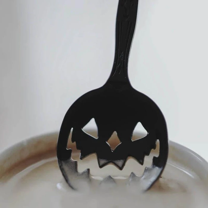 Haunted Hallows. The official Jack-O-Lantern of Lively Ghosts. This 6″ spoon features intricate design-work on the handle — including crescent moons and a Victorian-inspired filigree — as well as a cutout jack-o-lantern design for the base. Perfect for mixing libations such as tea, cocktails, poison, and the like.