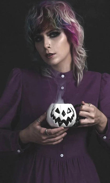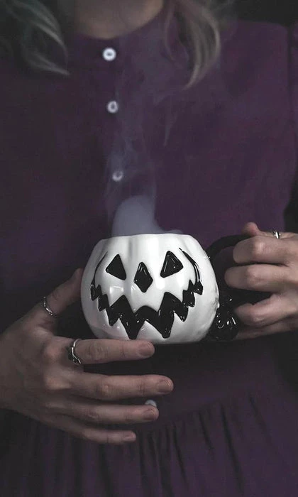 This pumpkin-shaped mug holds 12oz of coffee, tea, whiskey, blood (for all you vampires out there), or whatever your delicacy might be. Please note this will come in the standard mug box from the traditional Haunted Hallows Mug.