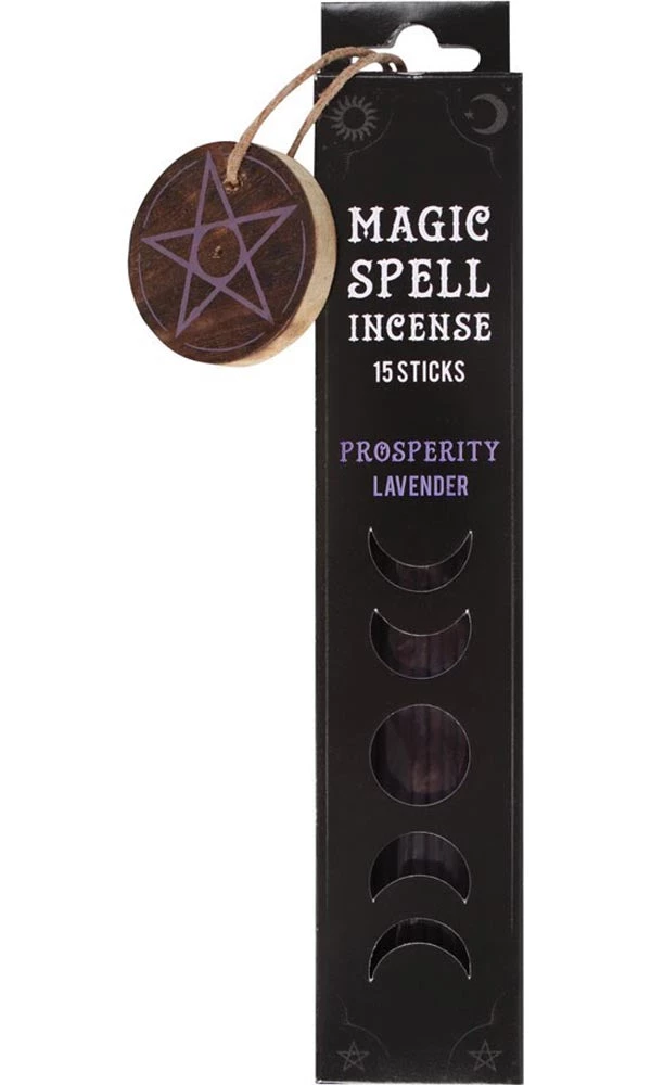 ο»ΏThis box of magic spell incense includes 15 lavender scented incense sticks and a matching wooden pentagram holder that is perfect for accompanying spells of growth and prosperity. Whether used for spell workΒ or everyday enjoyment, this fragrance will attract all kinds of success.