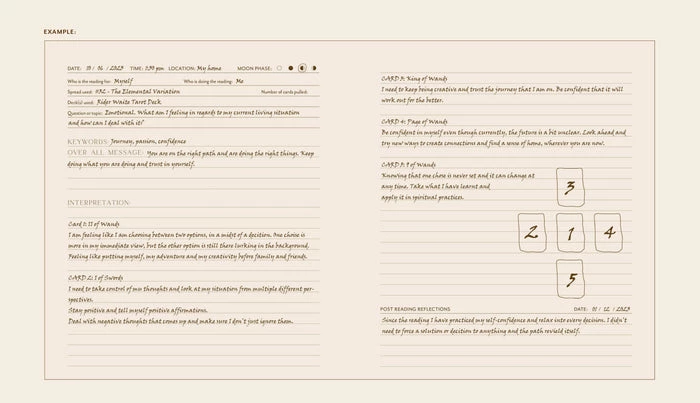 The journal includes a helpful introduction to card reading, reading exercise, notes on the differences between oracle and tarot readings, and suggestions for spreads to work with.