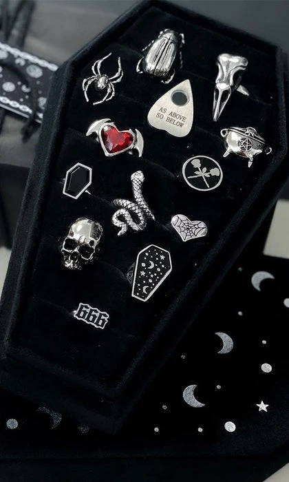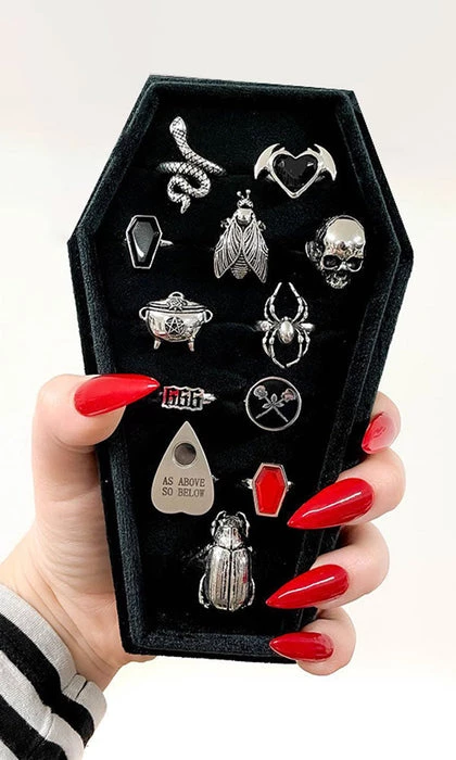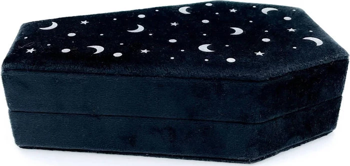 The heavens areΒ calling you with the Cosmic Coffin ring tray! Protect and safely hold between 18 & 20 rings (depending on ring size).Β