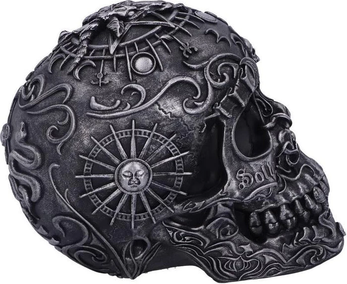 Dating back to the inquisition and torture of the Knights Templar, this skull has the words Solve and Coagula emblazoned onto its cheekbones. The skull is covered in detailed Baphomet symbols, but contrary to popular belief, the Baphomet is not a symbol of the satanic or the occult, but the embodiment of opposition and contrasting ideas. It is a symbol of balance in the universe and also a fountain of knowledge and intelligence. Cast in the finest resin before being expertly hand-painted, this Baphomet Worship Skull will make the perfect addition to any Gothic, Horror, or Baphomet collection.