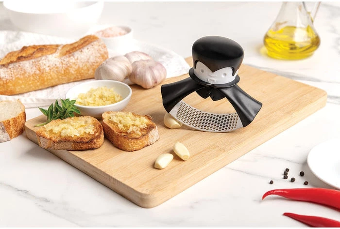 Rockula’s not afraid of garlic. He’ll rock back and forth until your garlic is crushed to bits! This is a vampire who never quits!
