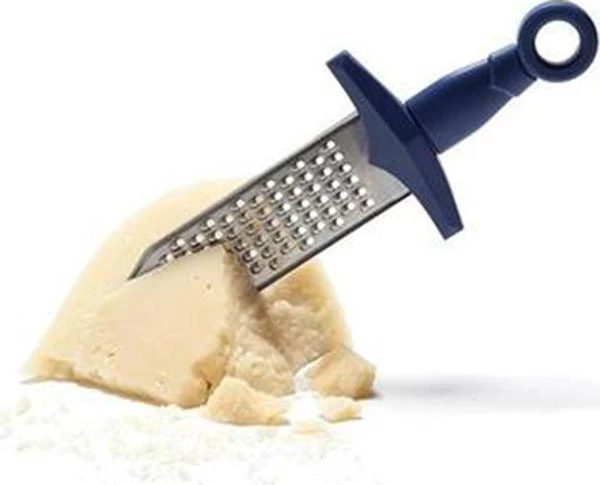That’s not a knife, THIS is a knife! Wait, no, that’s a cheese grater! Grating cheese does not need to be a battleβ¦ But, it can be an adventure with this handy little sword!Β Use it to grate your cheese easily, just as they did in Roman times. Probably.