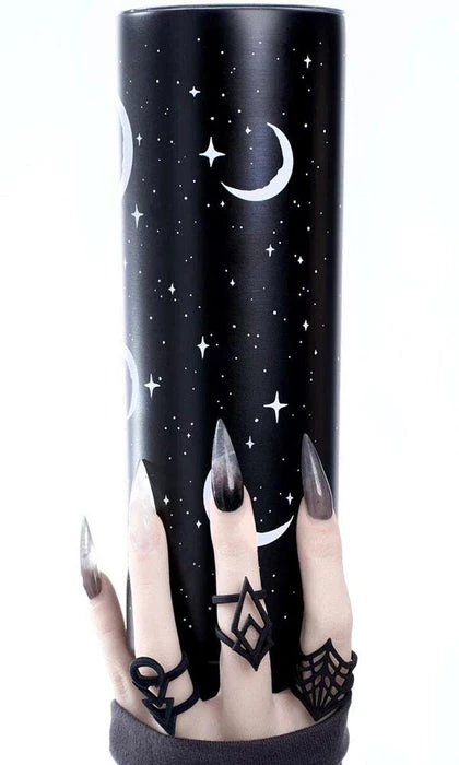 Hold the warmth of the stars within your hands with theΒ Skinny Stainless Steel Moonlight Tumbler!Β A more compact (but equally beautiful) version of its predecessor, this Insulted Tumbler keeps your brews hot for just as long, while being much easier to carry if long walks in nature are your thing!