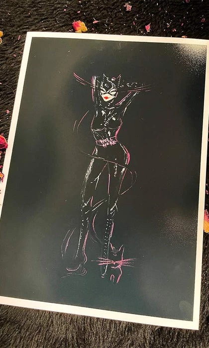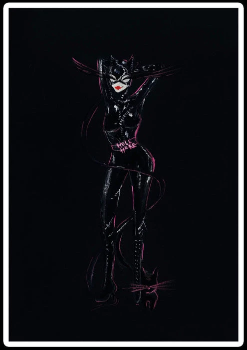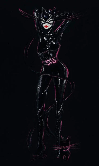 Original gouache painting inspired by Tim Burtonβs infamous character Catwoman from the 1992 comic classic film Batman Returns.