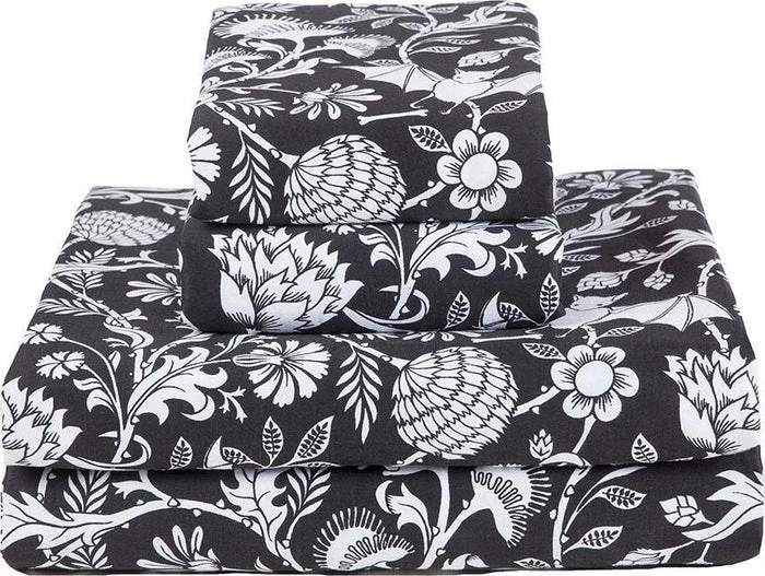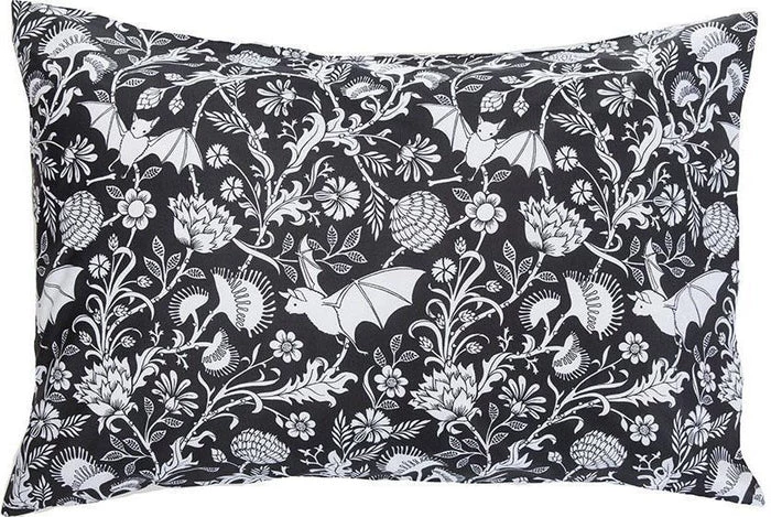 Step into a garden of delight. The Elysian Fields bring bats and botanicals home for you to enjoy. Let the eye wander among non-traditional foliage like Venus Fly Traps and Thistles. Your bat cave deserves the best linens and we’ve got you covered with this bats and botanical print for the home.