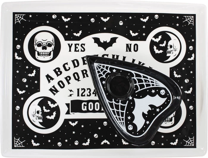Conjure all the spirits you want with the handy ceramic planchette dish! Use as a place to stash jewellery, coins, or other small things; or use in combination with our coordinating Spirit Board Tray for one helluva chip and dip or veggie tray! We’ve even used it with a tea light for ultimate ambiance.