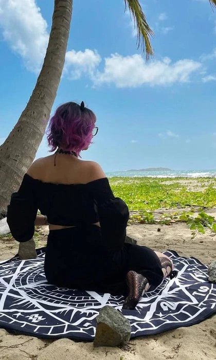 We all know symbols have power to protect and to strengthen. This towel has it all! Zodiac signs on the outer edge of the towel and alchemical sigils in the center.ย There’s also sacred geometry for good measure!