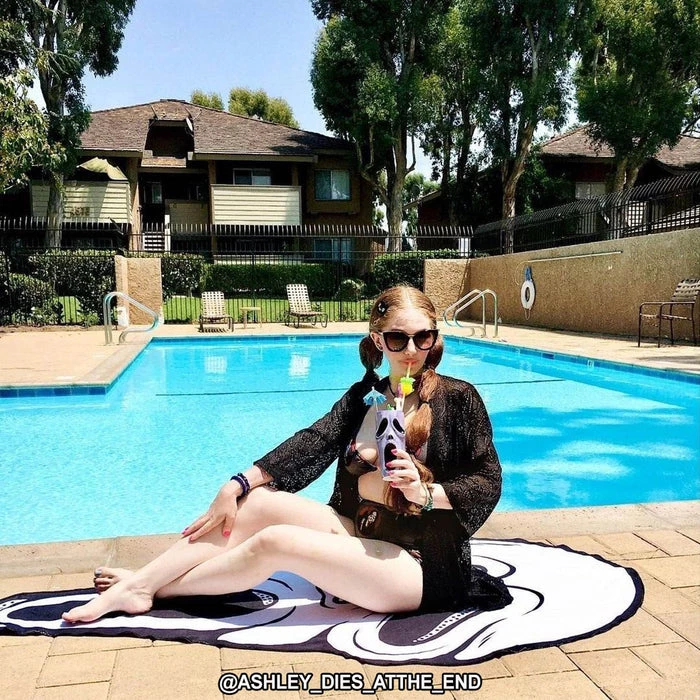 Horror movie lovers unite over this screamer of a beach towel! Take it with you if you want to stand out, or if you need to lie down because you’re “Feelinβ A Little Woozy Here!”